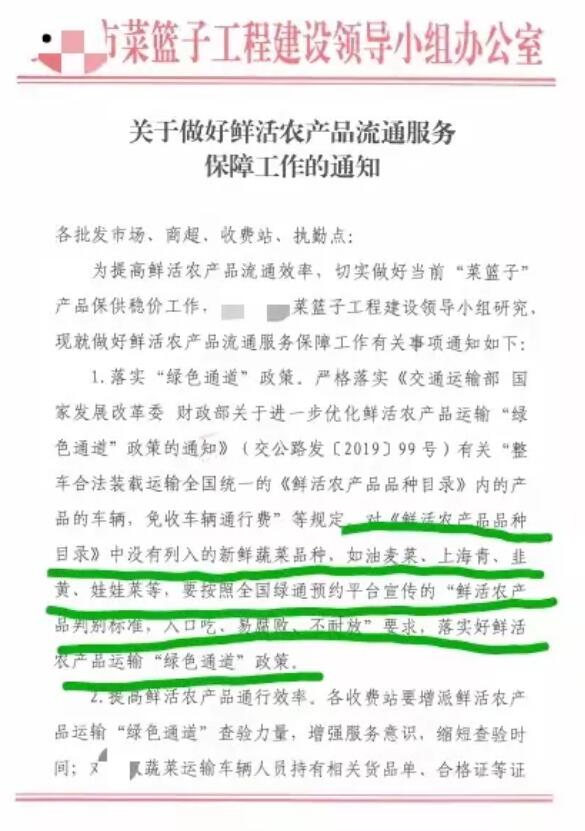 據(jù)全國部分主流官方媒體報道:11月初,中部某地方“菜籃子”工程建設(shè)領(lǐng)導(dǎo)小組辦公室發(fā)出通知,外地車輛運輸蔬菜進入該城市,非《鮮活農(nóng)產(chǎn)品品種目錄》內(nèi)的蔬菜品種,應(yīng)按照國家關(guān)于鮮活農(nóng)產(chǎn)品判別標準,享受鮮活農(nóng)產(chǎn)品運輸“綠色通道”政策,免收車輛通行費。